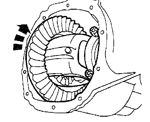 ^ If the backlash is not within specification, correct by increasing the thickness of one differential bearing shim and decreasing the thickness of the other differential bearing shim by the same amount.