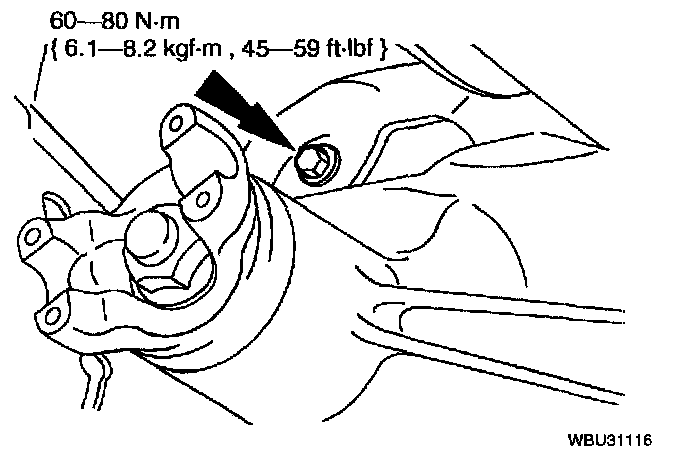 Note: Use new fasteners when installing the front axle.