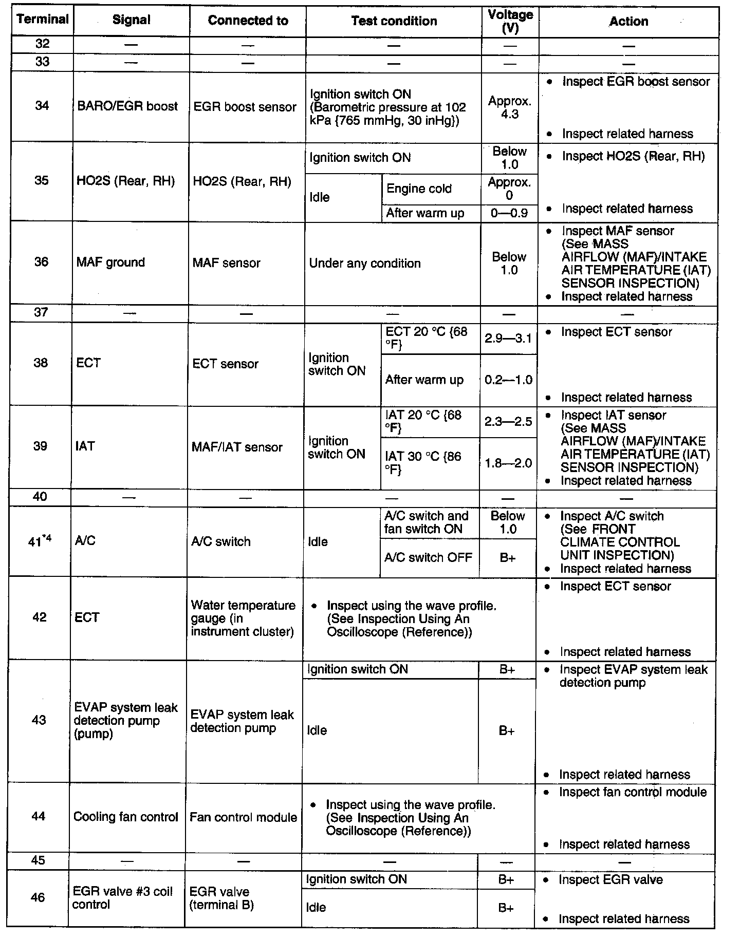 Terminal Voltage Table (Reference) - Terminals (32 - 46):