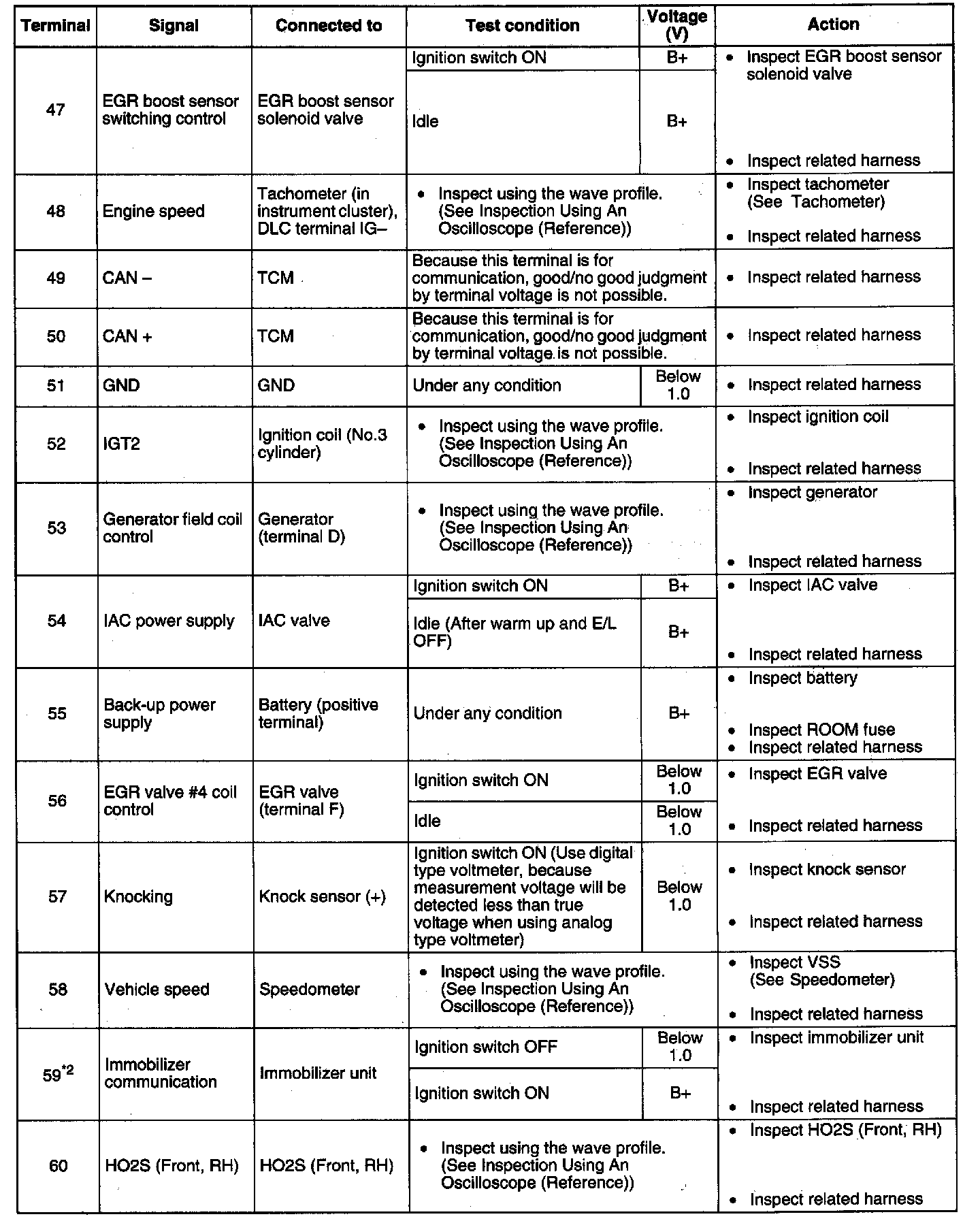Terminal Voltage Table (Reference) - Terminals (47 - 60):