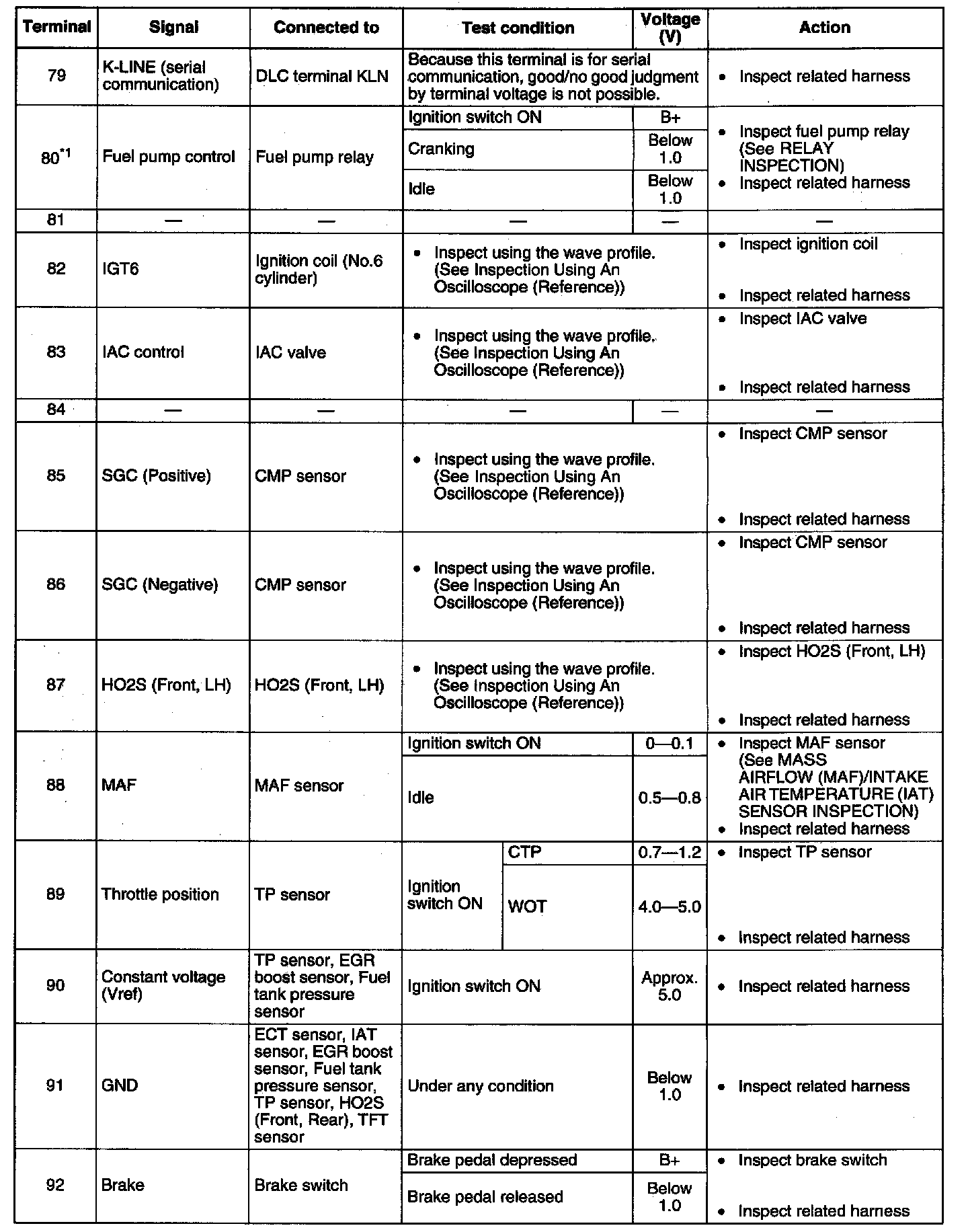 Terminal Voltage Table (Reference) - Terminals (79 - 92):