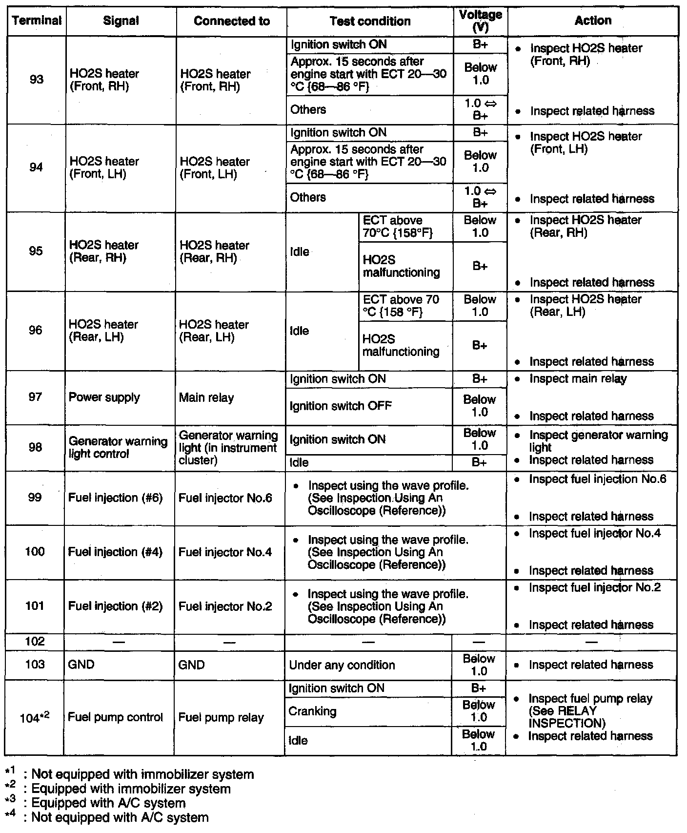 Terminal Voltage Table (Reference) - Terminals (93 - 104):