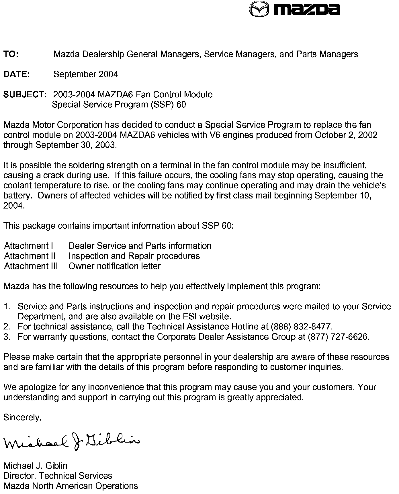 September 2004 - Dealer Letter