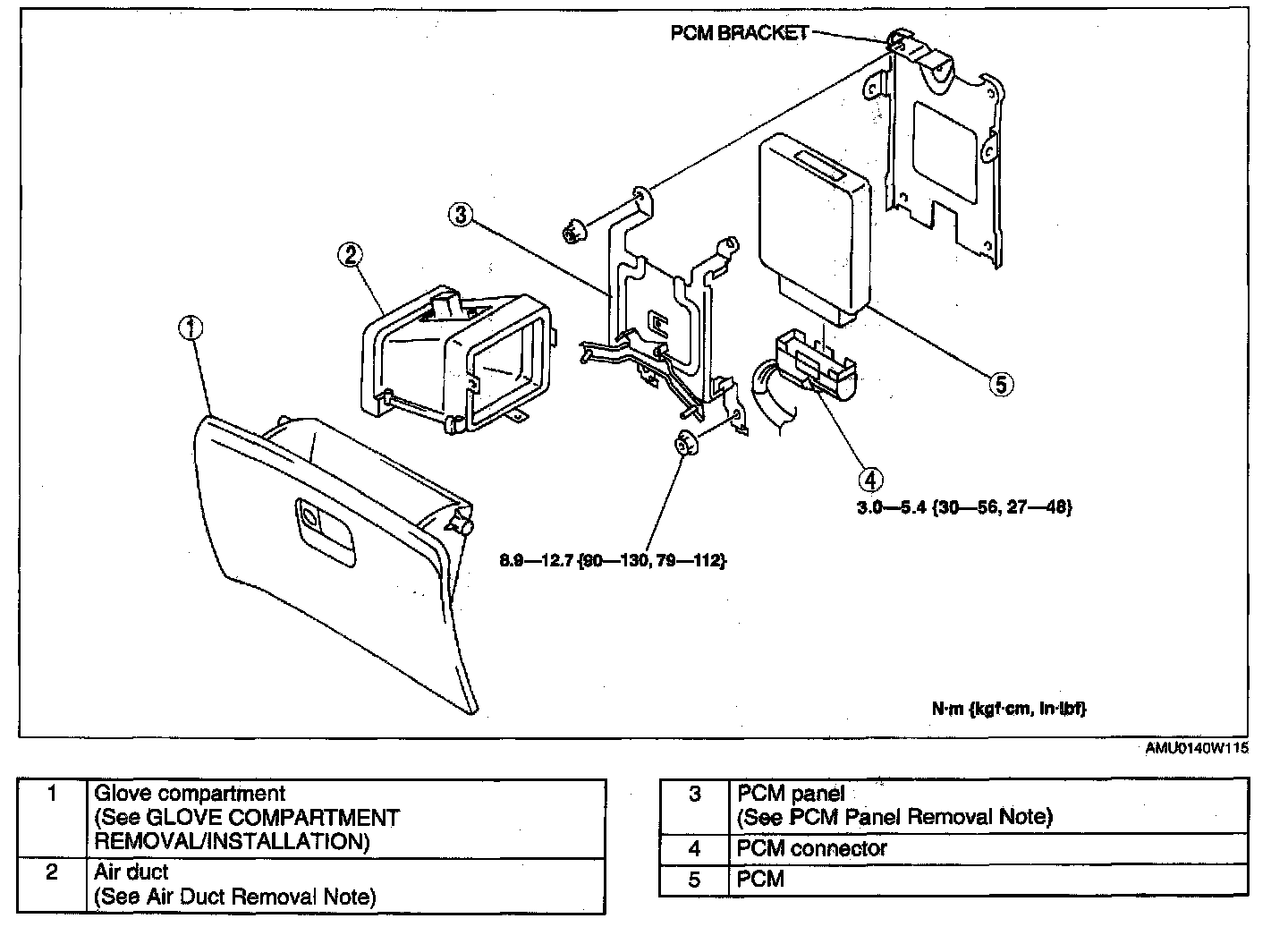 4. Remove four installation nuts, then pull the PCM panel down to remove from installation place.