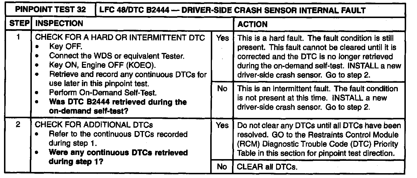 Pinpoint Test 32: LFC 48/DTC B2444 - Driver-Side Crash Sensor Internal FaultNormal Operation