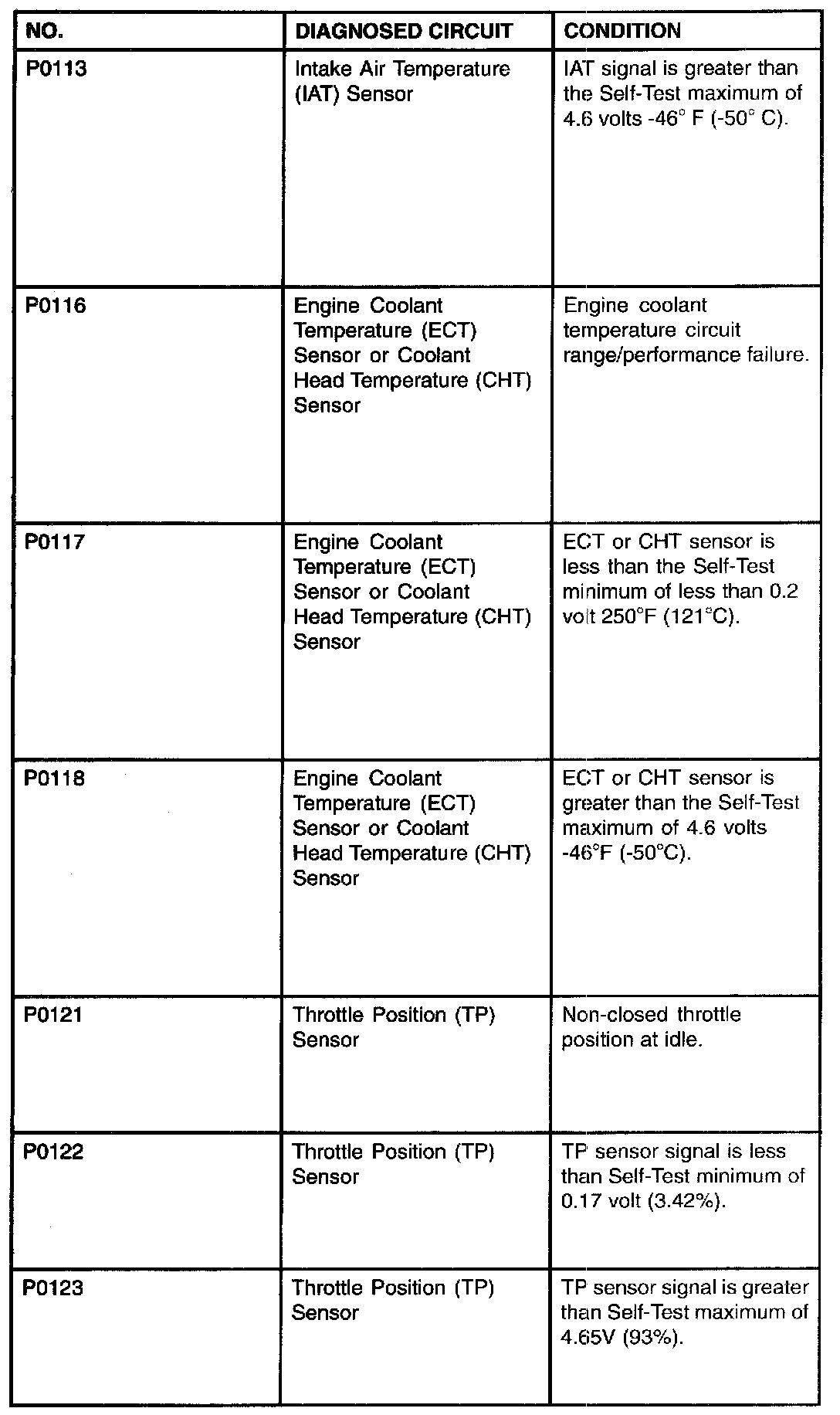 P0113 - P0123: