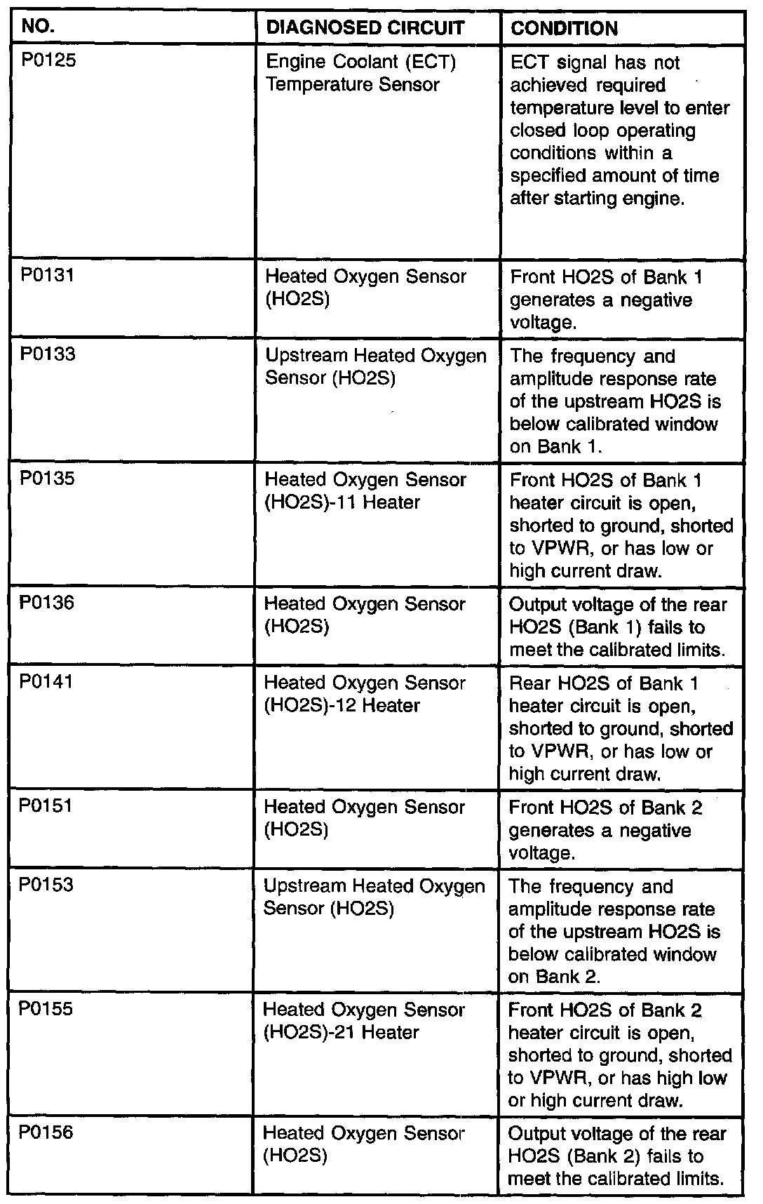 P0125 - P0156: