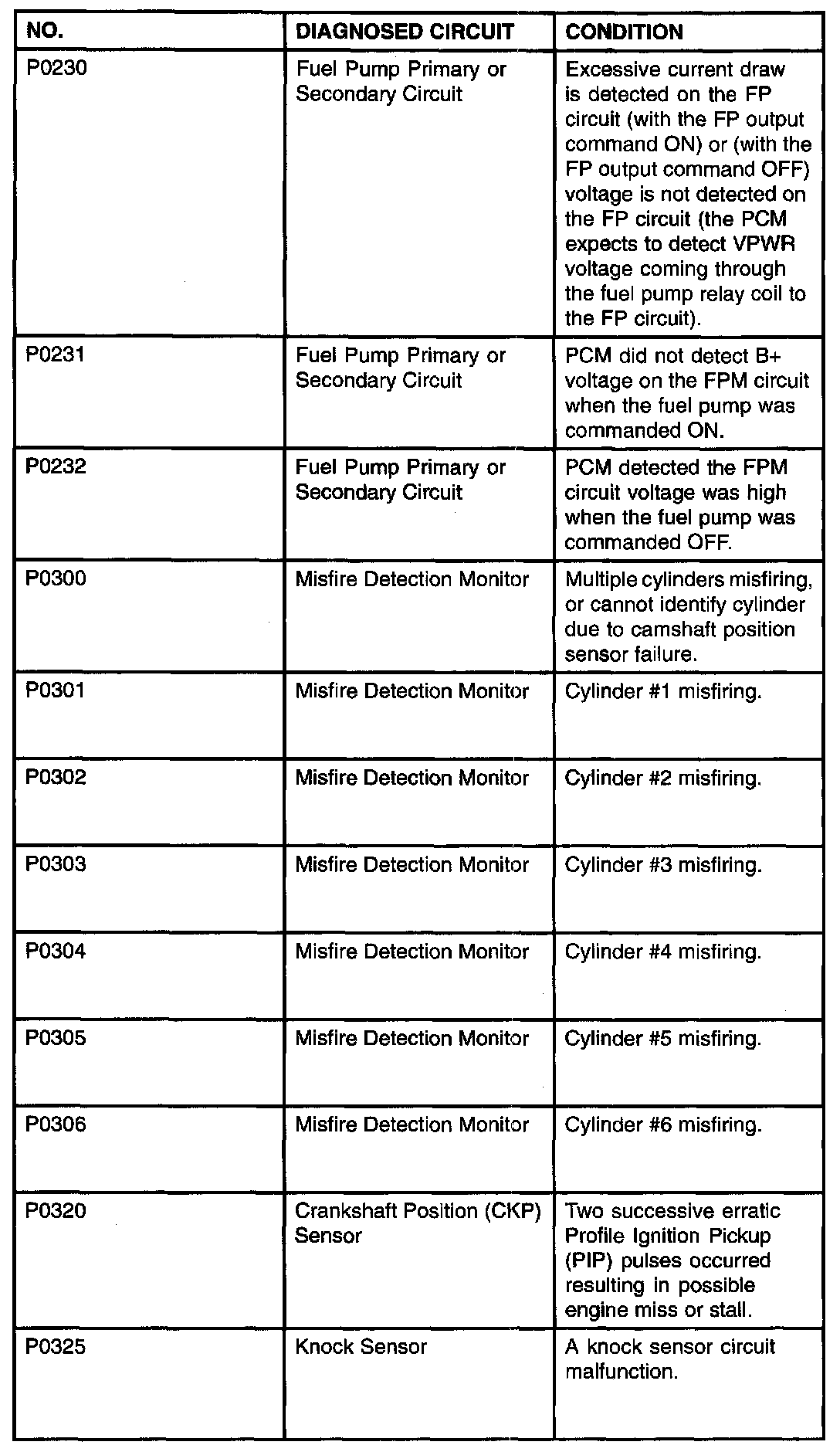 P0230 - P0325: