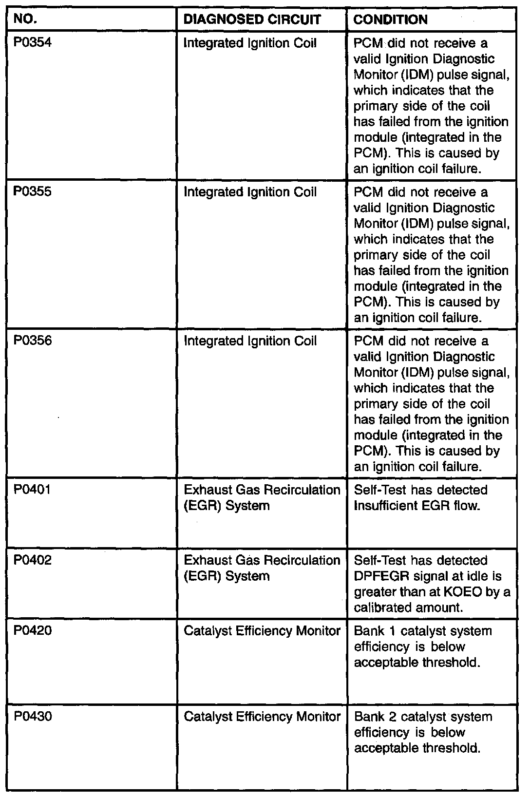 P0354 - P0430: