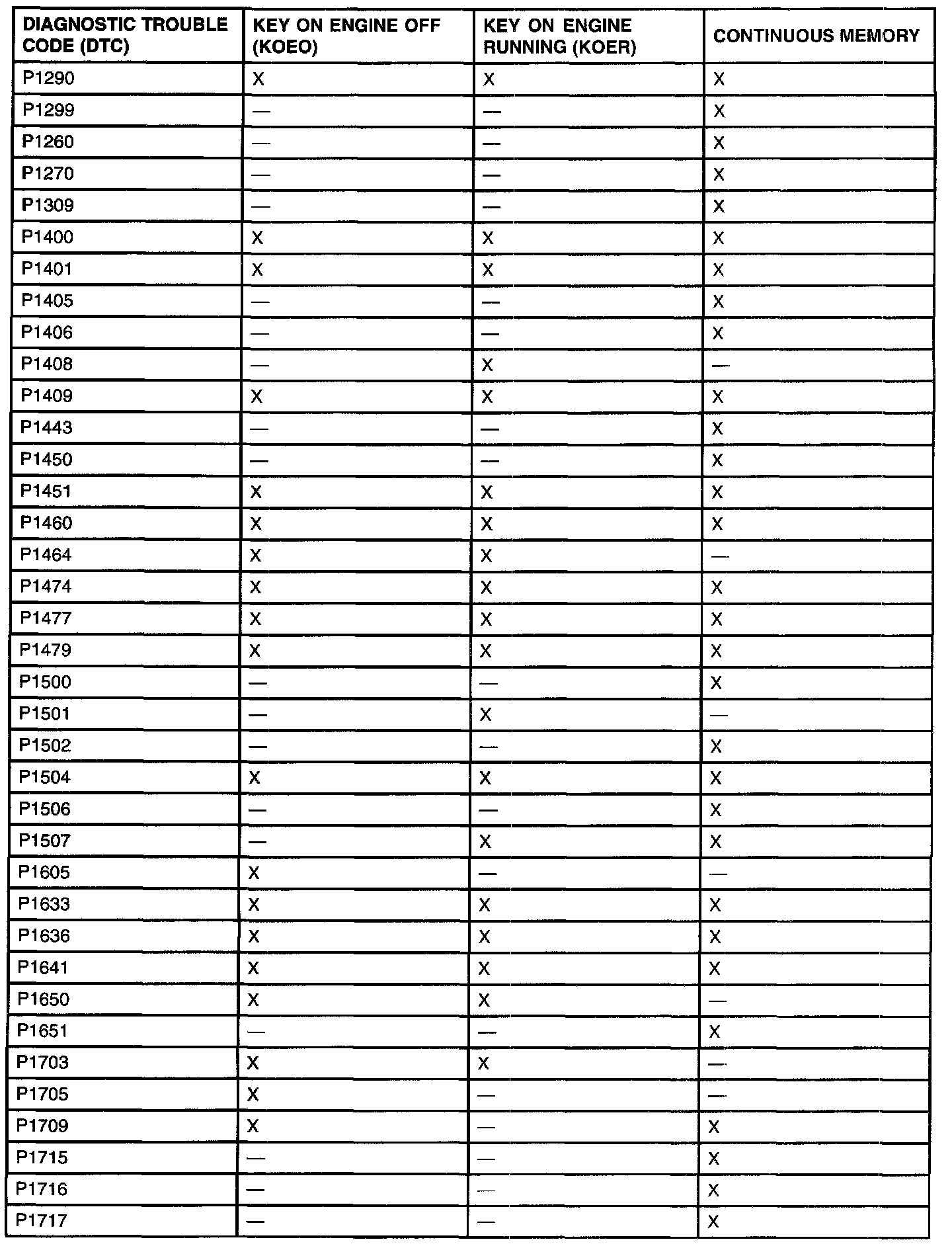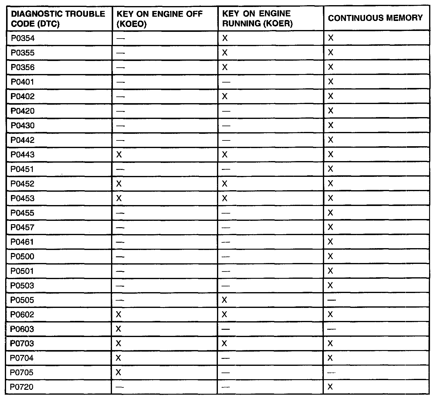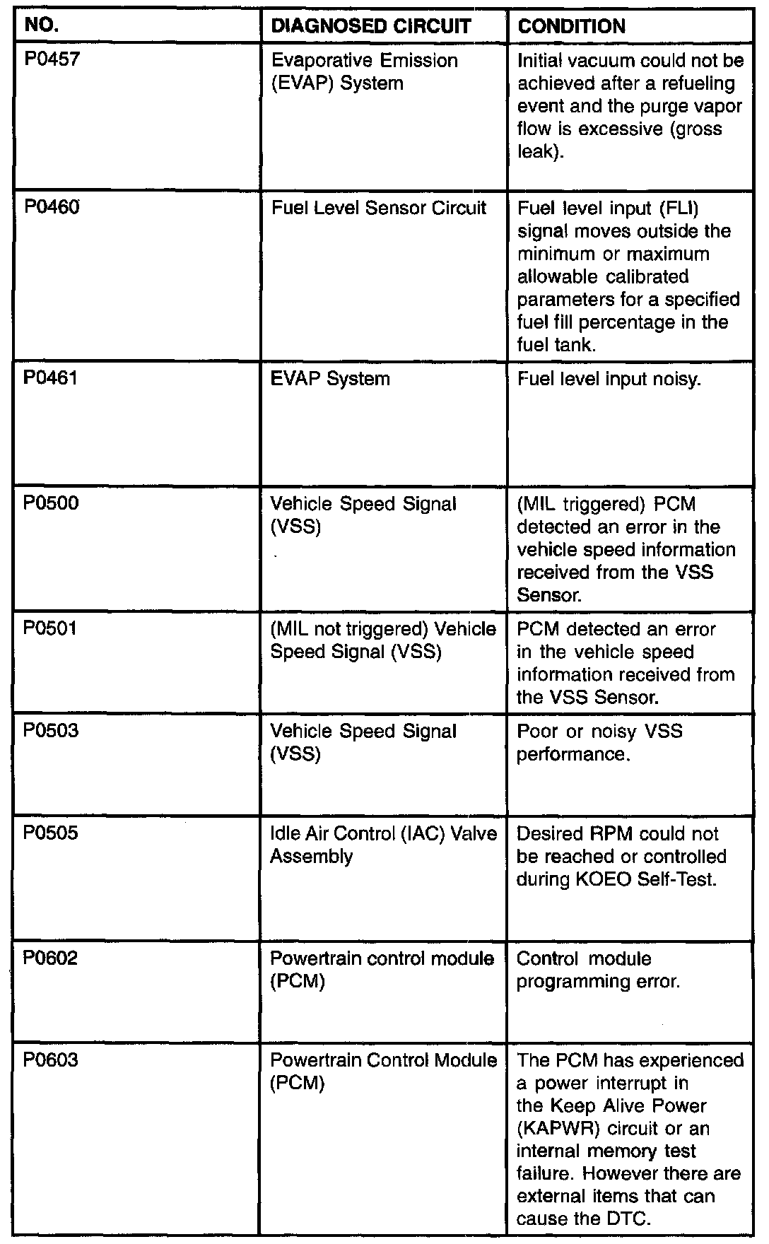 P0457 - P0603: