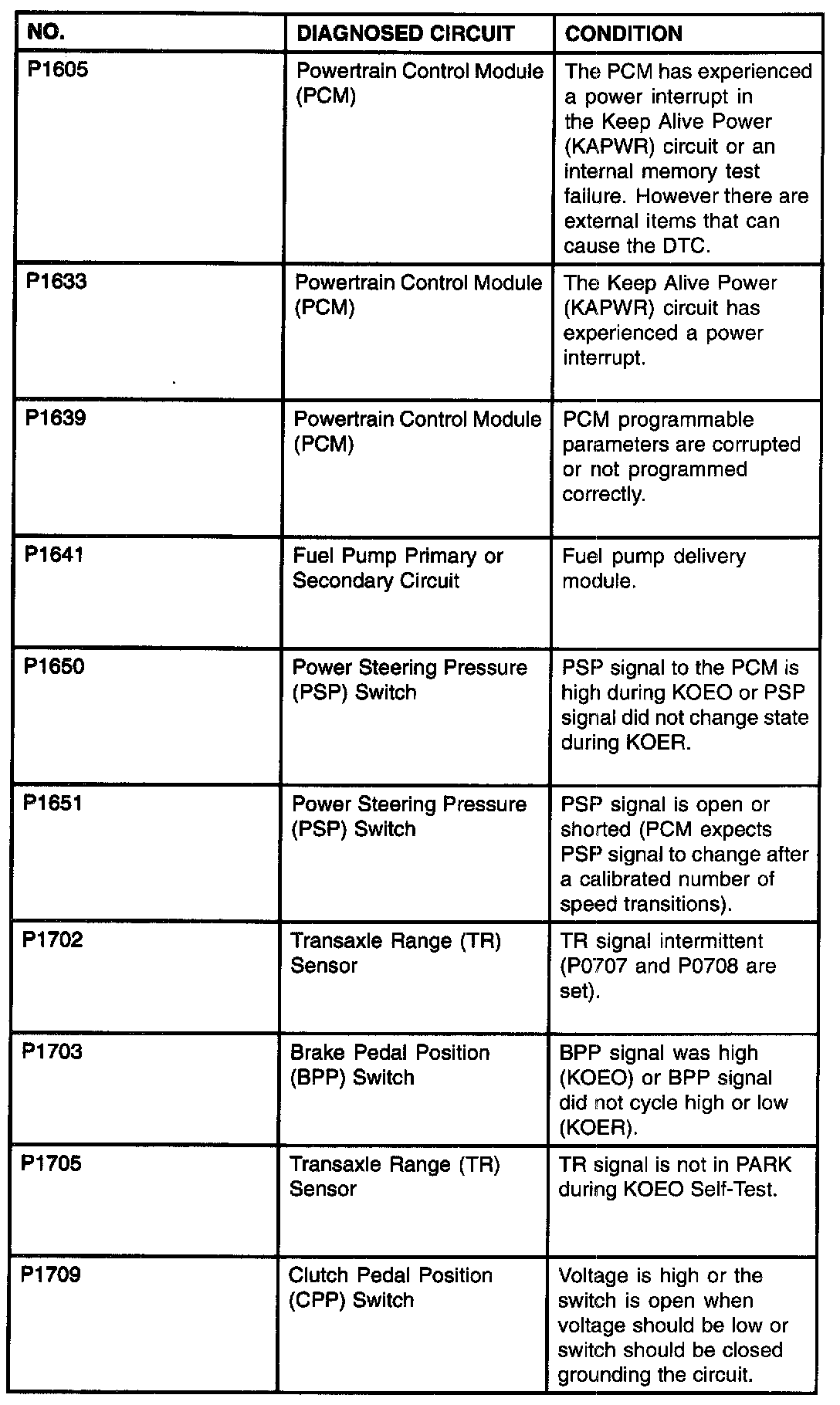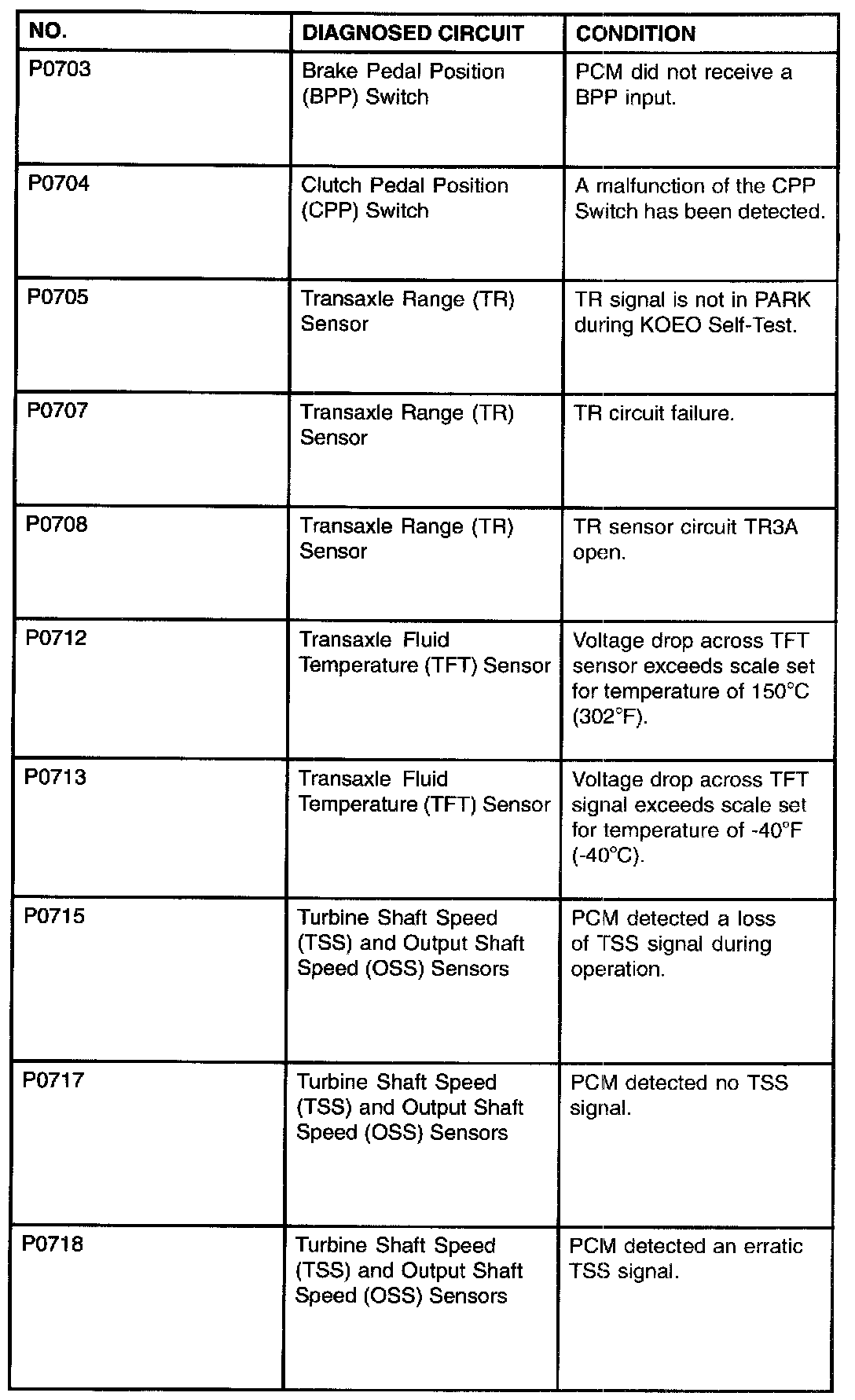 P0703 - P0718: