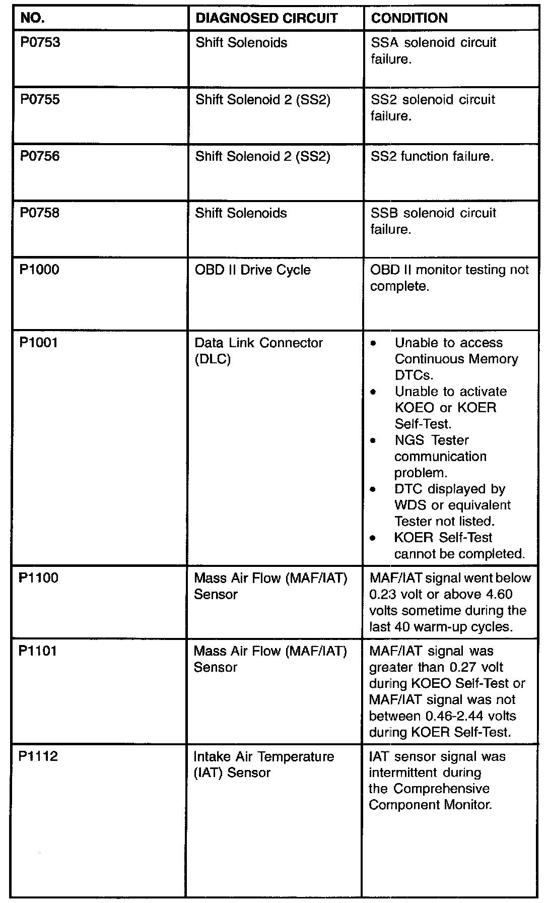 P0161 - P0206: