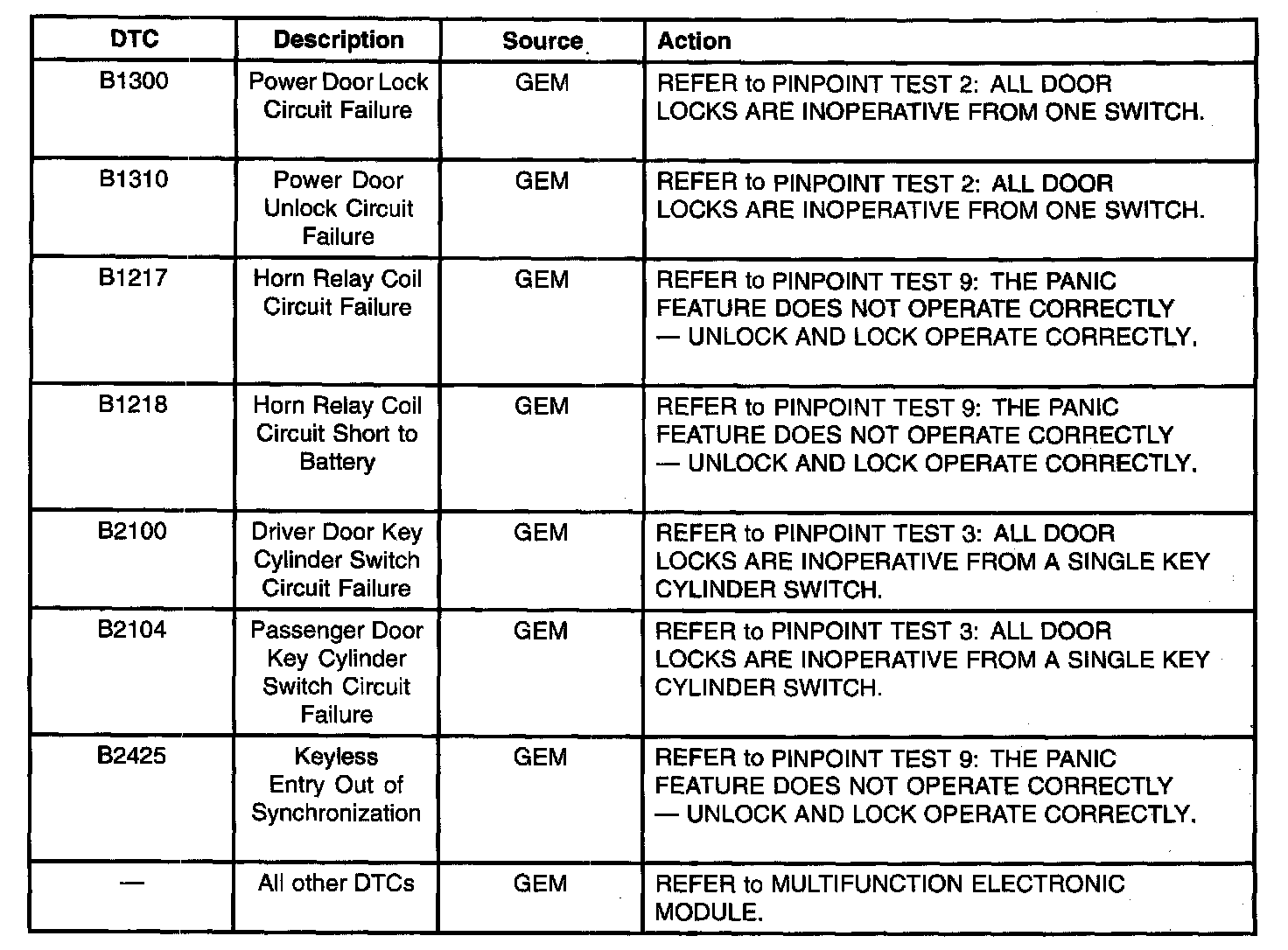 DTC B1300 - B2425: