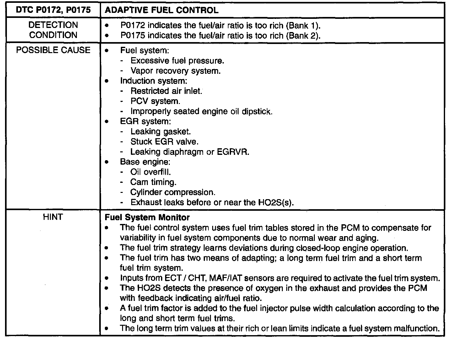Detection Condition/Possible Cause:
