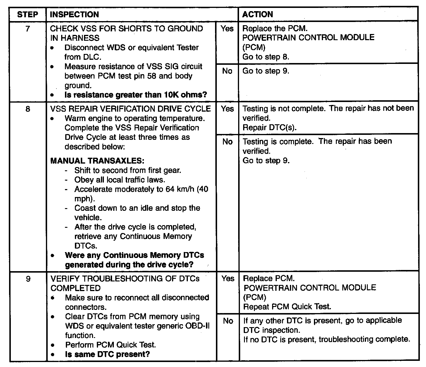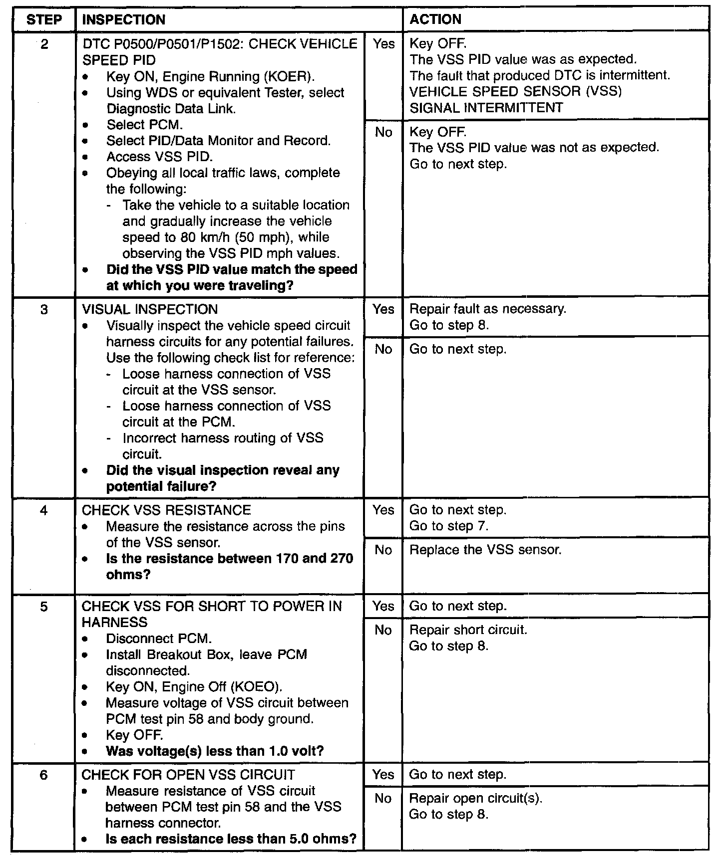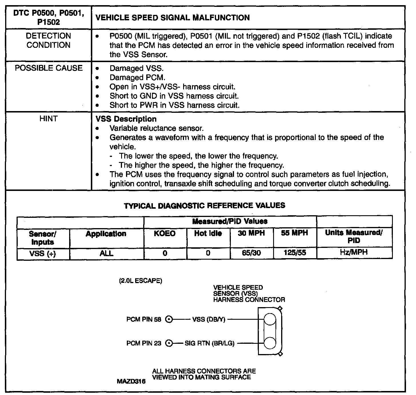 VEHICLE SPEED SIGNAL MALFUNCTION
