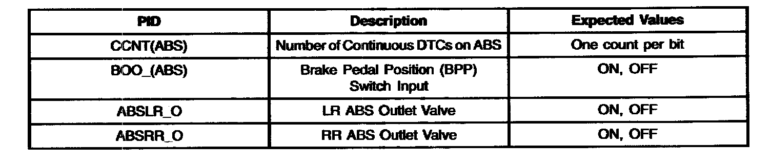 Anti-Lock Brake Control Module Parameter Identification (PID) Index
