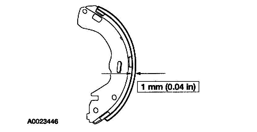 11. Inspect the rear brake shoes for minimum thickness above the backing plate, and install new ones as necessary.