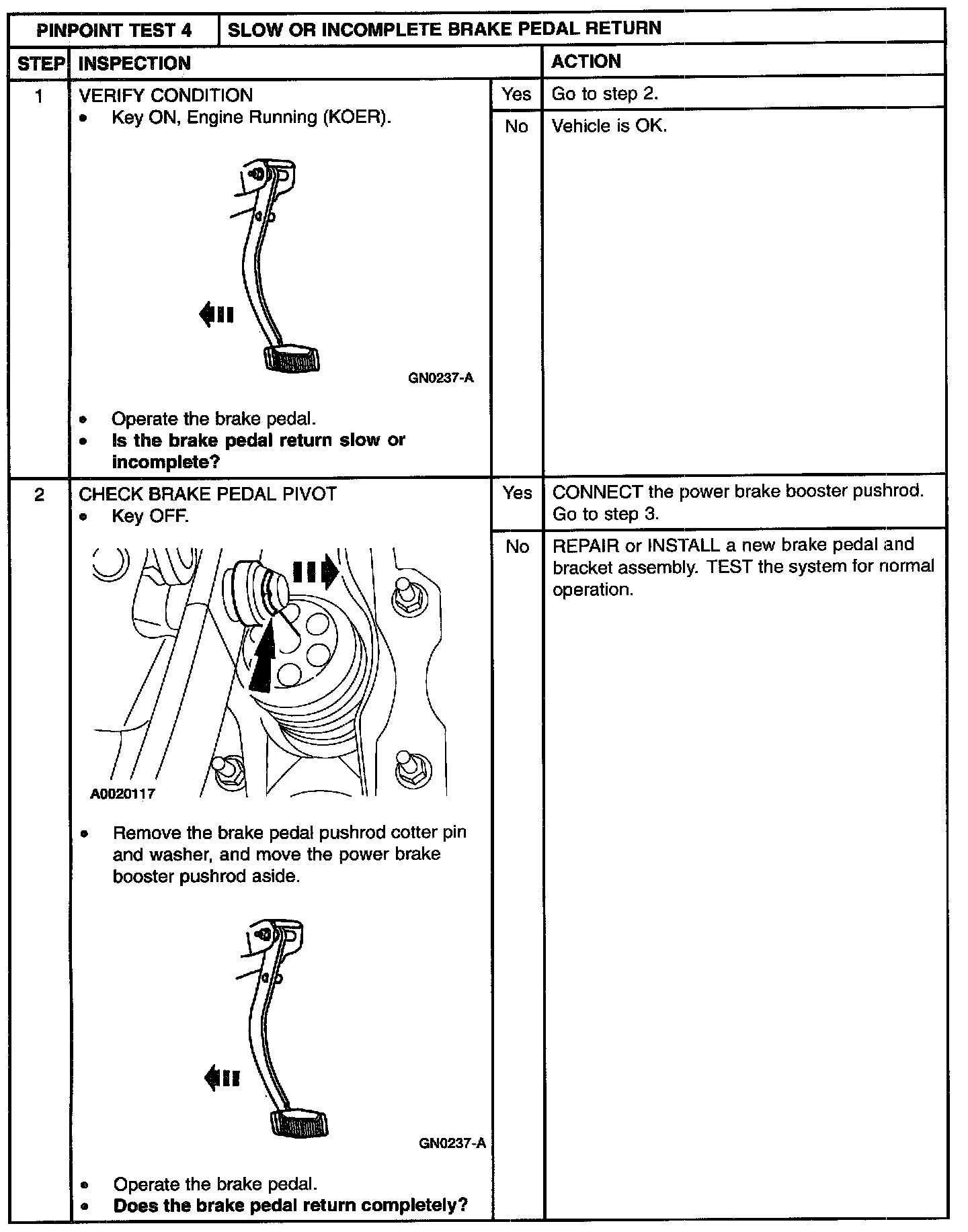 PINPOINT TEST 4: SLOW OR INCOMPLETE BRAKE PEDAL RETURN