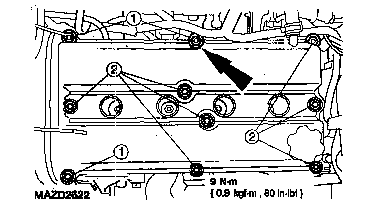 7. Clean and inspect the sealing surfaces of the valve cover and the cylinder head. Both surfaces must be clean and flat.