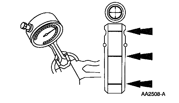 VALVE GUIDE INNER DIAMETER1. Measure the inner diameter of the valve guides in two directions where indicated.