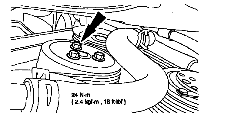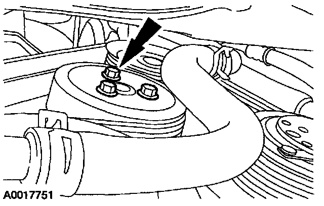 4. Remove the bolt, nut, and position the coolant tube aside.
