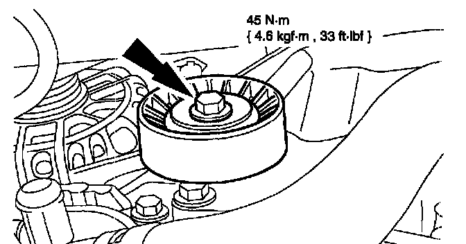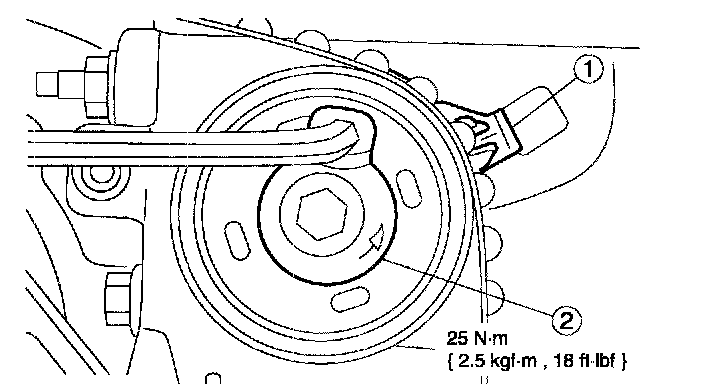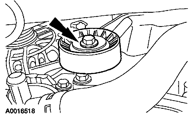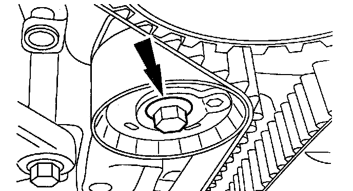 18. Loosen the timing belt tensioner pulley and allow to slide down to the bottom of its travel.