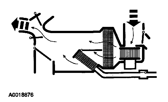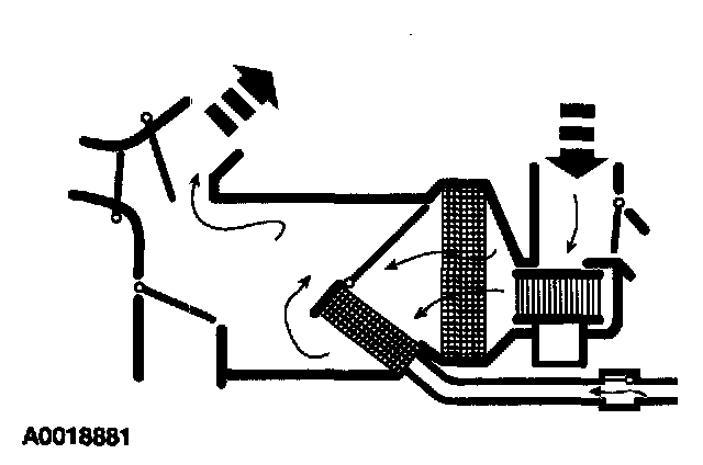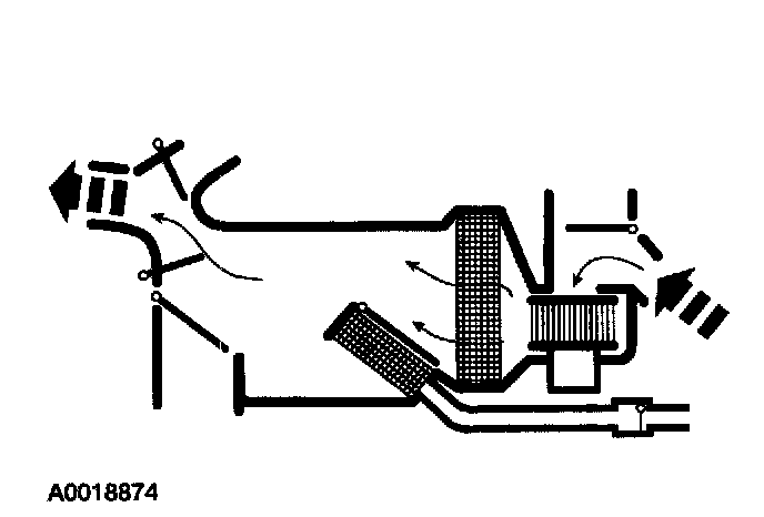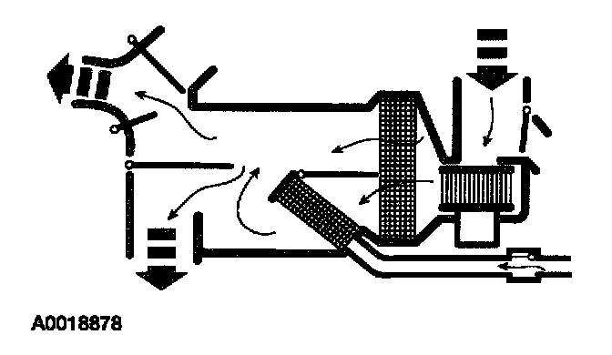 - The air inlet blend door, with no vacuum being applied, blocks recirculated air and allows outside air. Air flows through the system to the driver, passenger and center registers.