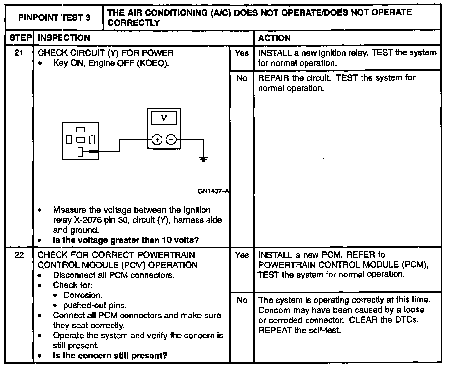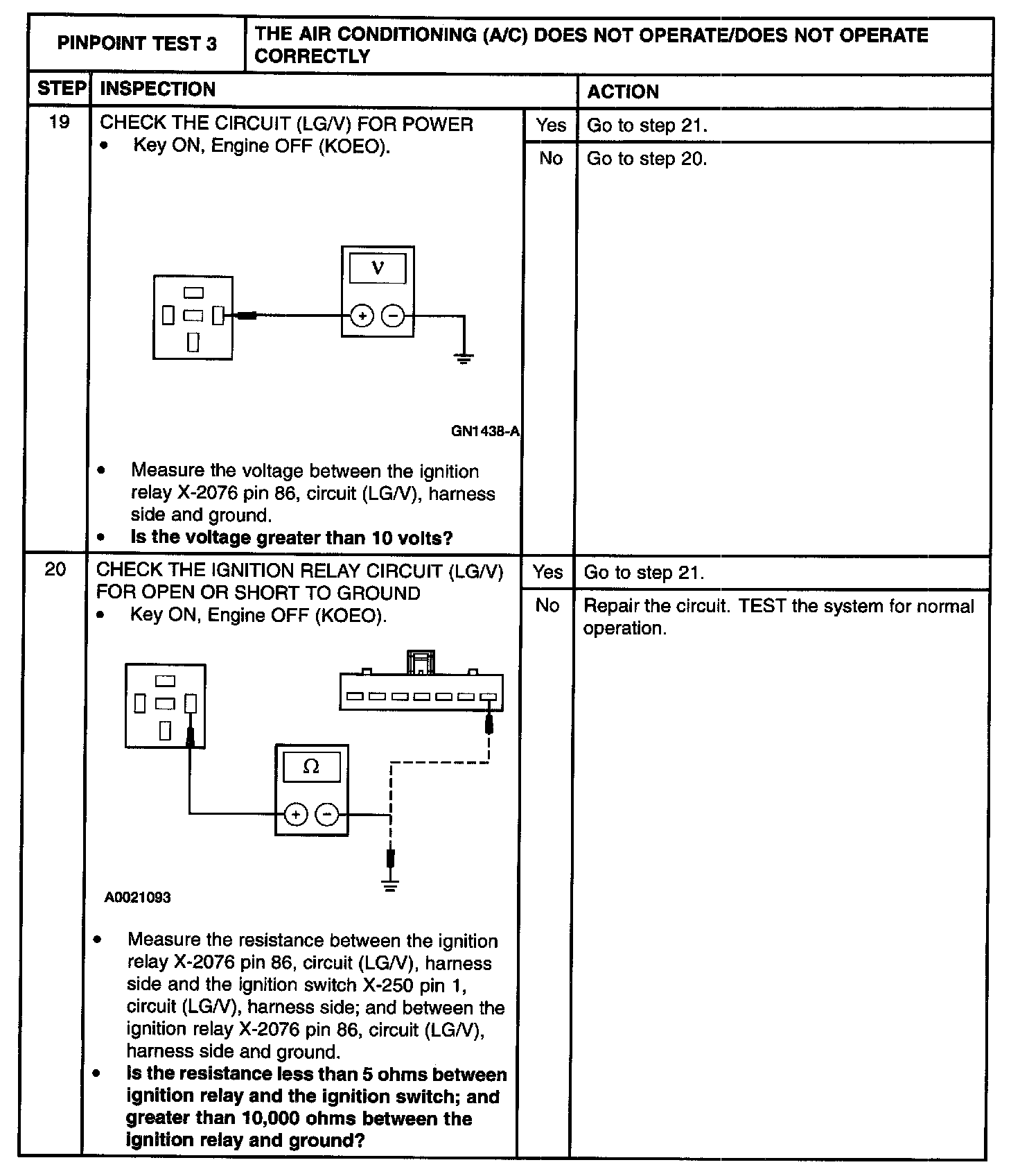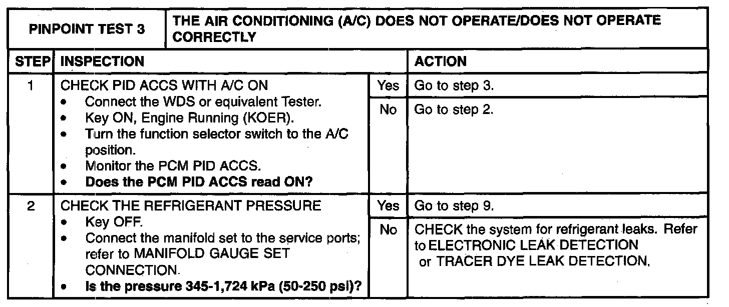 3: The Air Conditioning (A/C) Does Not Operate/Does Not Operate CorrectlyStep 1 - 2:
