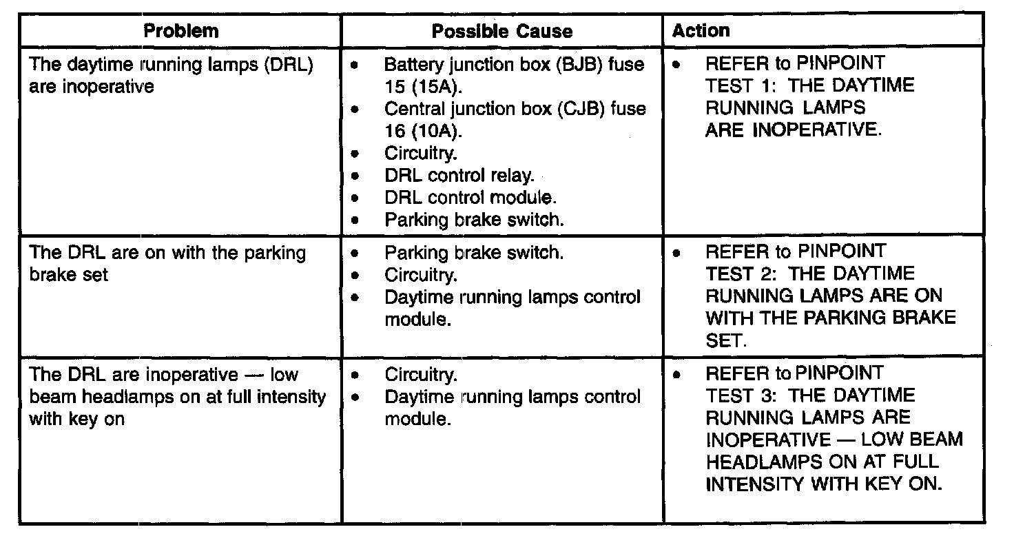 Troubleshooting Index - Daytime Running Lamps (DRL):