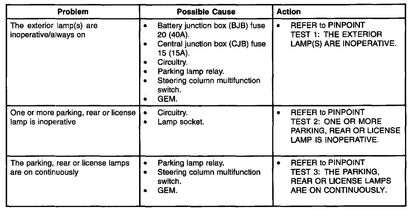 Troubleshooting Index - Exterior, Parking, Rear, And License Lamps: