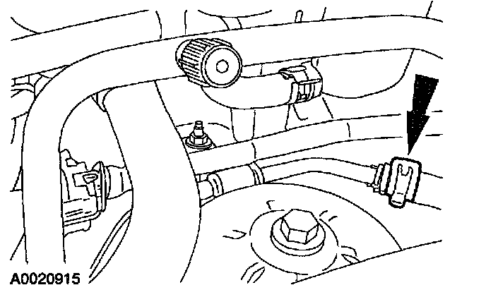 3. Release the clamp and remove the power steering return line.