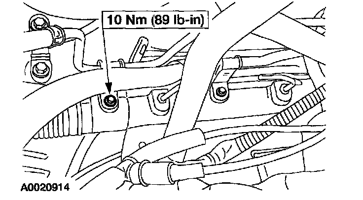 2. Remove the power steering return line bracket-to-gear bolt.