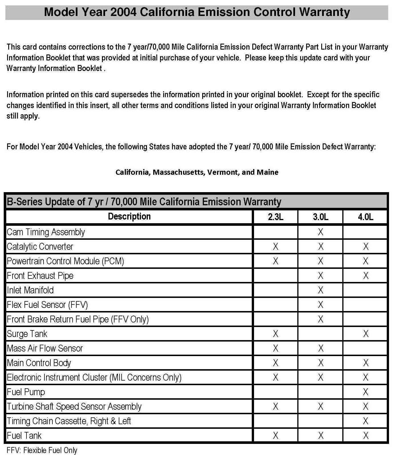 Model Year 2004 California Emission Control Warranty