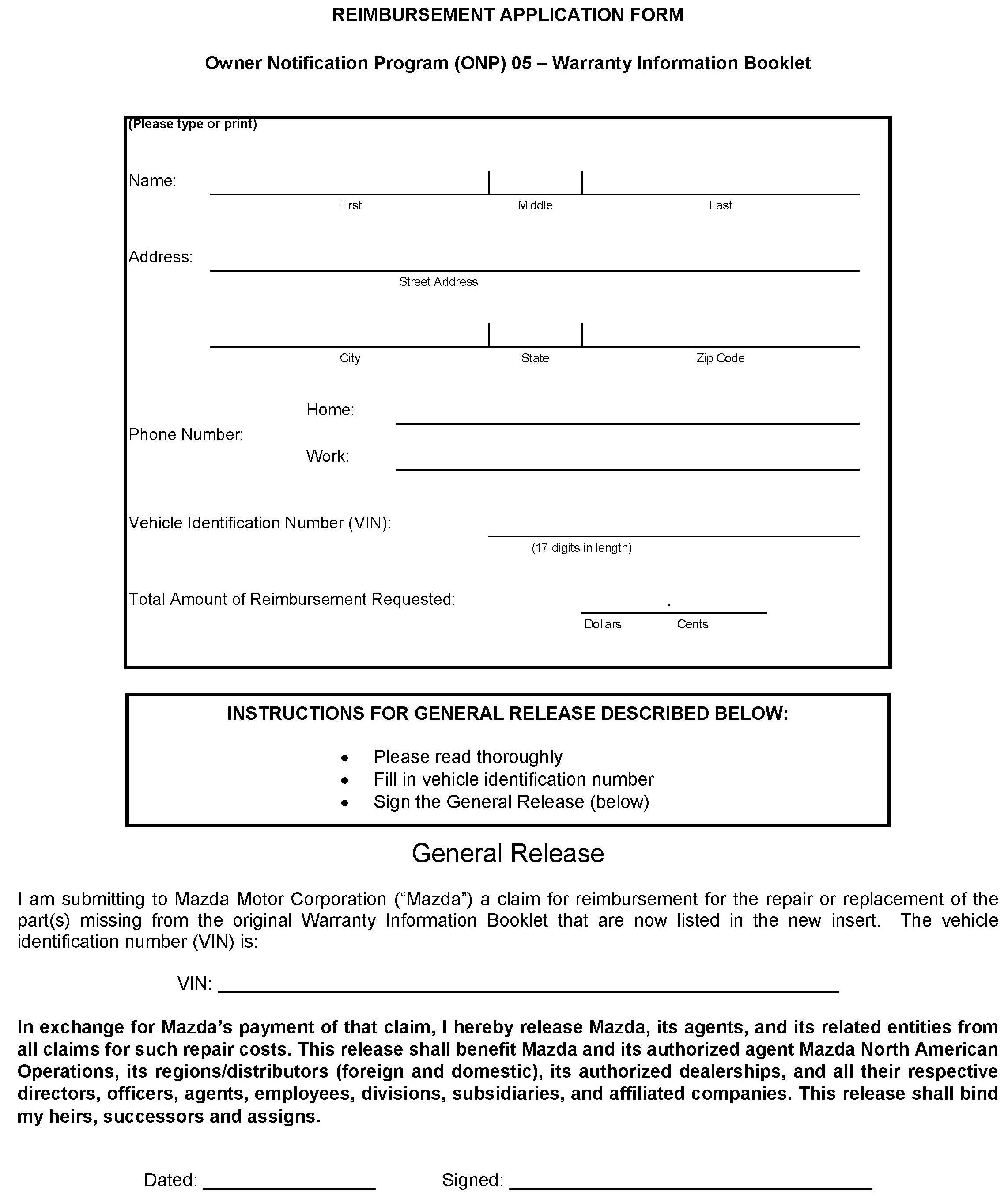 Reimbursement Form