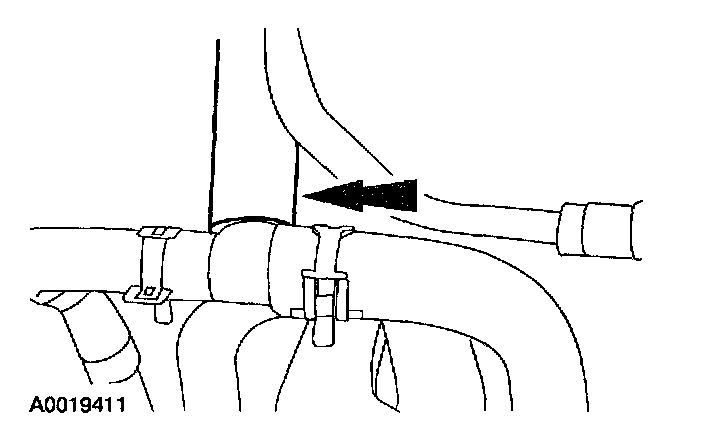 4. Disconnect the fuel tank filler hose and the fuel tank filler vent hose from the fuel filler tube.