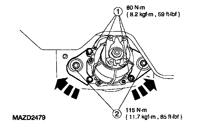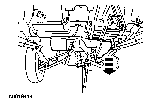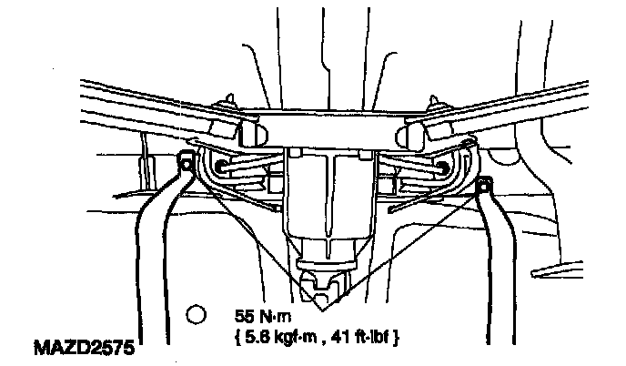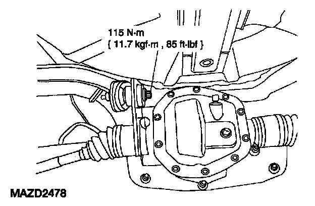 2. Loosen the differential mounting bracket-to-subframe mounting bolts, rotate the brackets and position the axle assembly rearward.