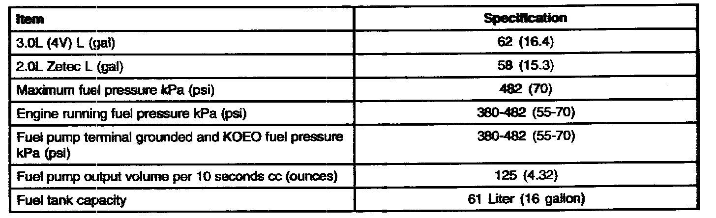 Fuel System Specifications: