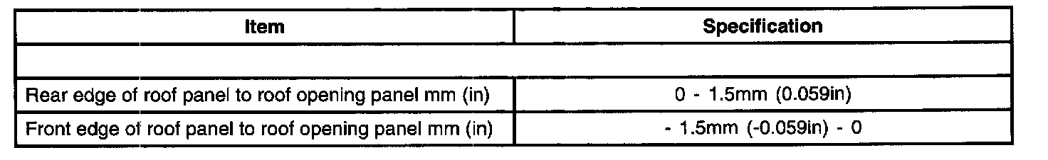 General Specifications - Roof Opening Panel: