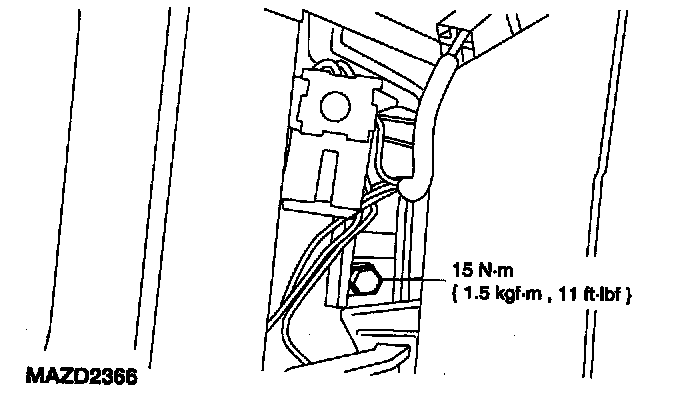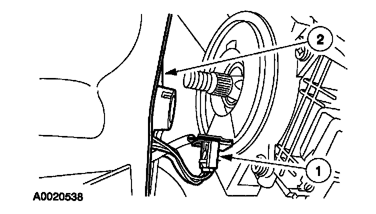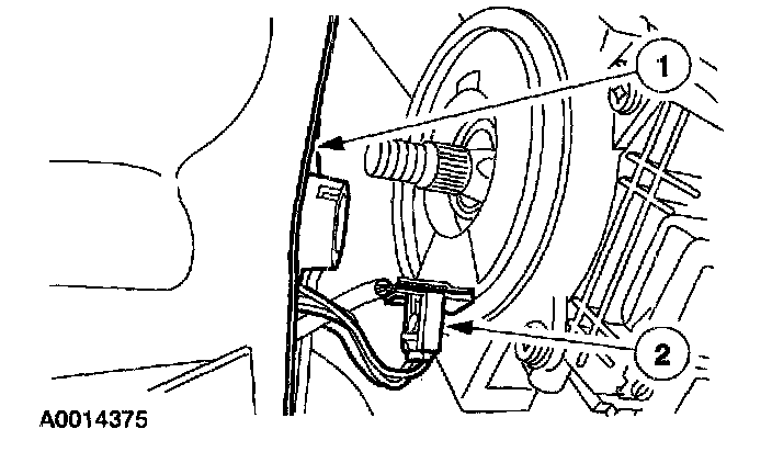 ^ Vehicle sensor orientation is critical for correct system operation. If a vehicle equipped with an air bag supplemental restraint system (SRS) is involved in a collision, inspect the sensor mounting bracket and wiring pigtail for deformation. Install and correctly position a new sensor or any other damaged supplemental restraint system (SRS) components whether or not the air bag is deployed.