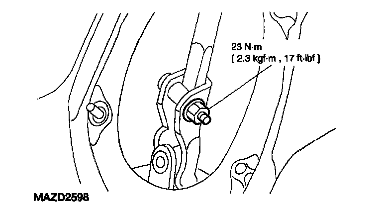 1. Install the steering column and loosely install the steering column support bolt. Install and tighten the nuts to specification.
