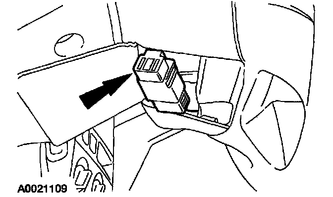 9. Connect the passive anti-theft system (PATS) transceiver module electrical connector and install the pin-type retainer.