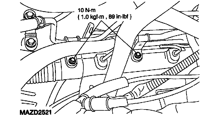 8. Connect the power steering pressure and return lines to the steering gear and install the bolt.