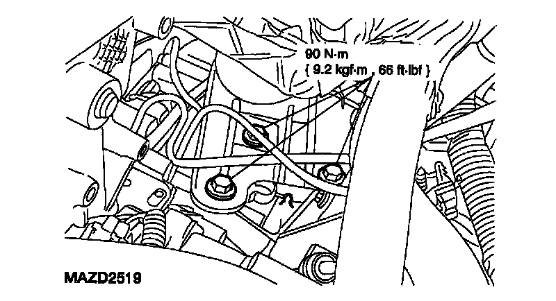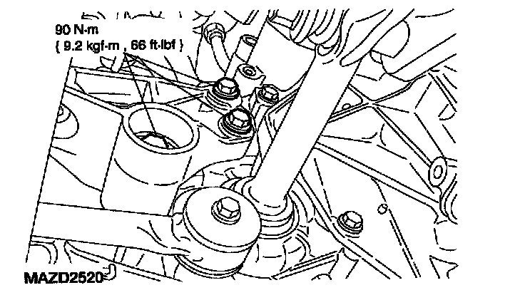 5. Remove the bolts and the rear transaxle insulator bracket.