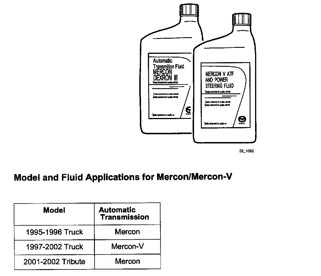 Mercon and Mercon V are not interchangeable fluids. When servicing a Mazda Truck or Tribute, be sure to use the correct fluid type.