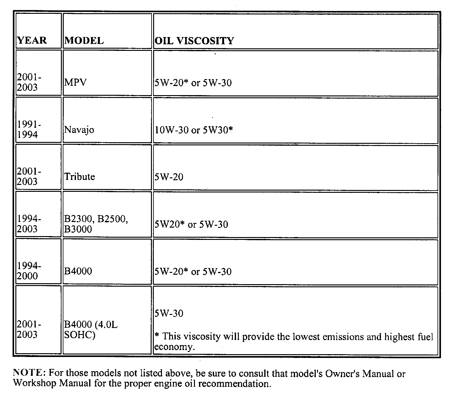 01-013/031994-2003 MPV, Navajo, Tribute, Truck -