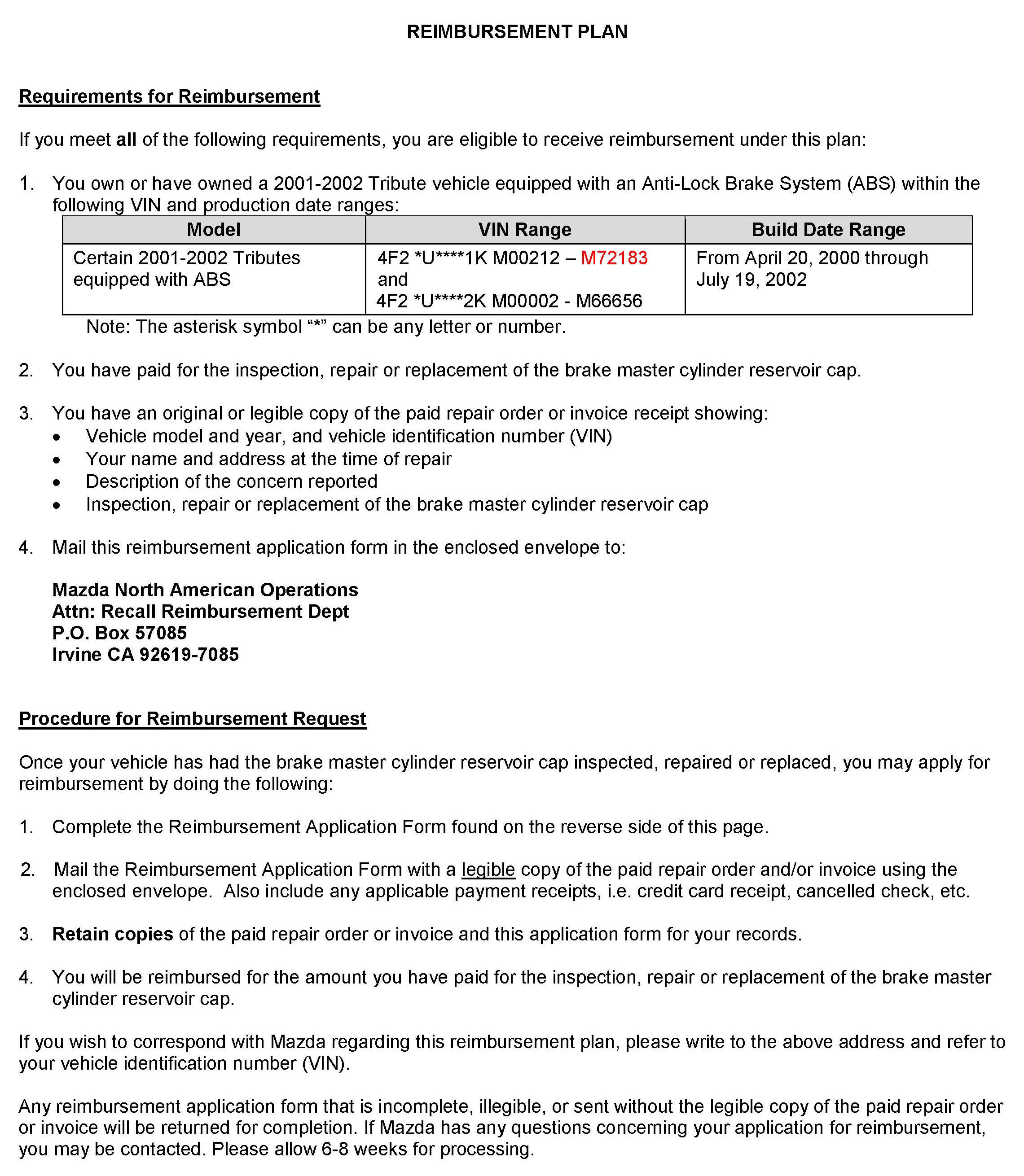 Reimbursement Plan