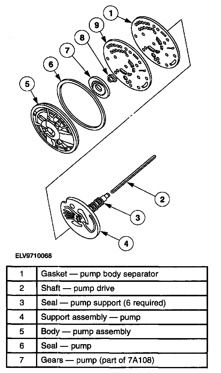 The pump provides the volume of fluid required to charge the torque converter, main control valve body, cooling system, lubrication system, and hydraulic apply devices. The transaxle uses a positive displacement gear and crescent-type pump which is shaft-driven by the torque converter.
