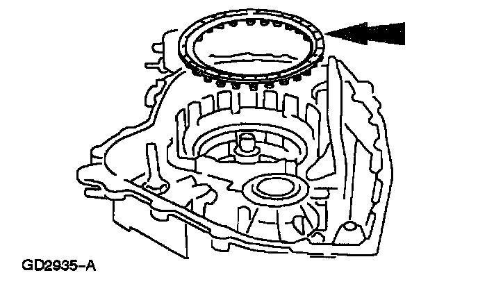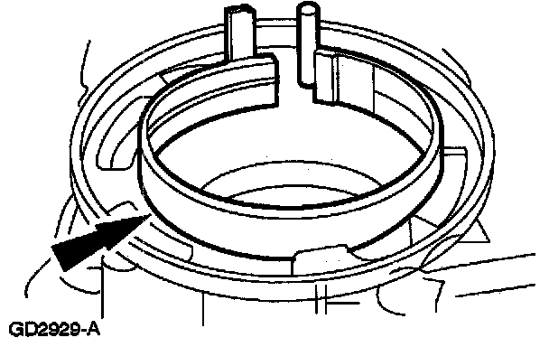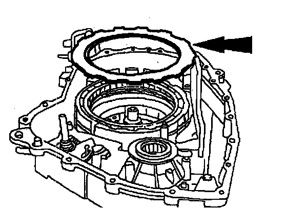 Note: Make sure to position the low one-way clutch retaining ring as shown.