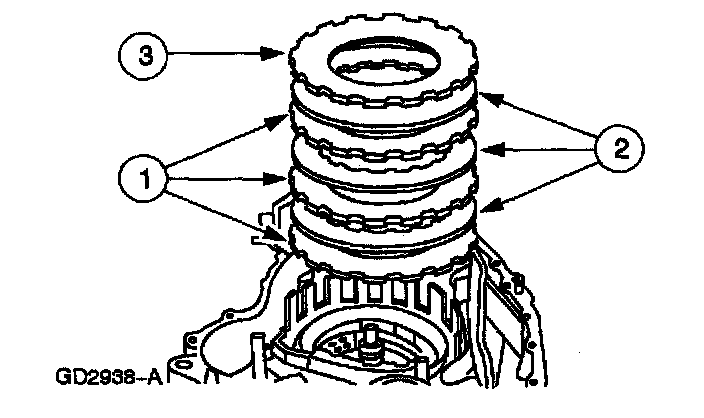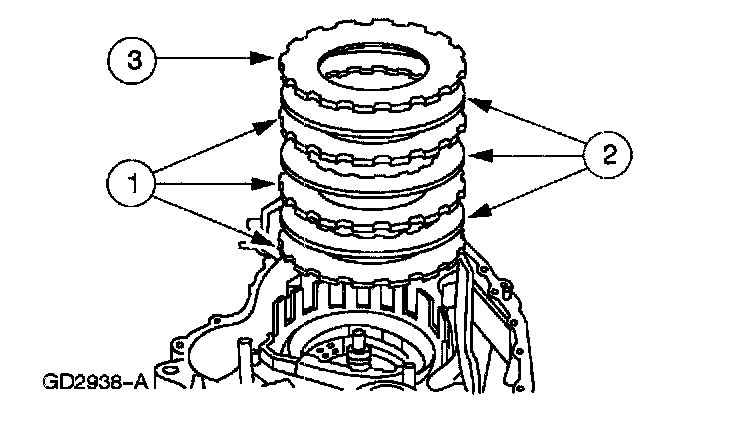 1. Install the low/reverse clutch external spline (steel) clutch plates.