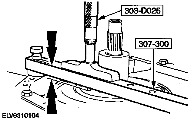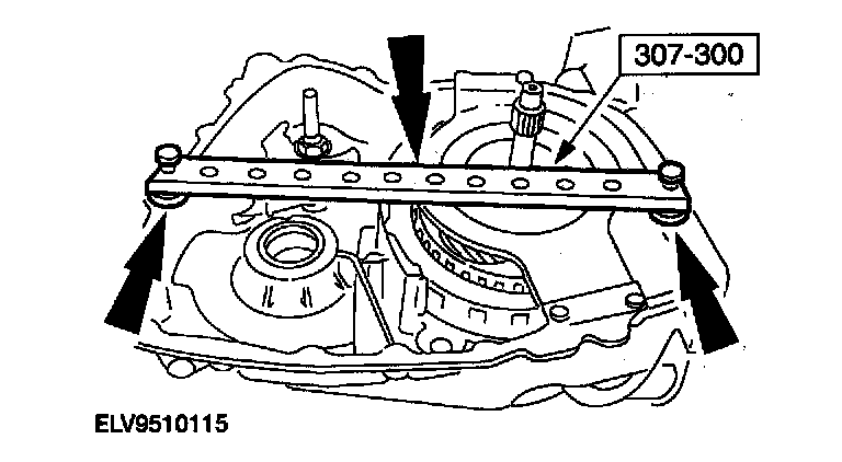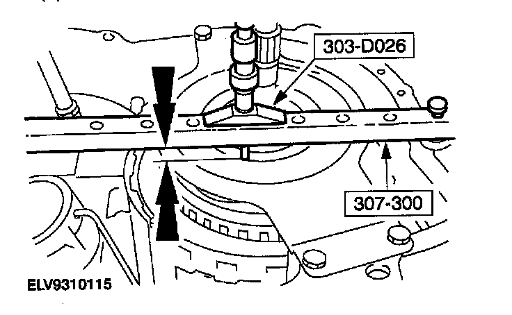 36. Using the special tools, measure the distance from the top of special tool to the bearing surface on the reverse/overdrive carrier assembly on one side of the turbine shaft.